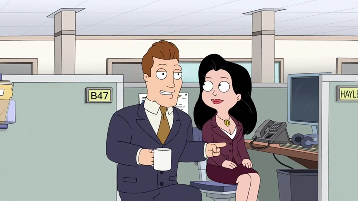 On a team building exercise to Belize, another employee named Mary drops that Ax is already married, causing Hayley further distress. Ax dismisses it as a marriage in name only later revealing that his wife is in an iron lung following an accident involving a Pixy Stick. Roger continues to want her to have the affair, although Klaus sides with Hayley to resist after revealing that he too was the victim of an affair by his past love, until Roger pushes her into going to him. But when she discovers that he has a tattoo of his wife and that it is one of Roger's personas named Roslyn, she refuses to go any further. Roger admits that the reason he wants her to get Ax to cheat is that he gets a big settlement in a pre-nuptial agreement if he does. Hayley refuses to be a part of it until the boss, Mr. Brenner realizes that blowing the money on the trip was a poor decision and fires half of the employees, including Hayley.