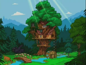 Buckle's Treehouse is the home Buckle the mountain man built when he decided to leave civilization after working as an Imagineer for Disney. After he fails to convince Hayley to marry him in "An Apocalypse to Remember", he does convince Sharri Rothberg to marry him and live in his house after she is left at the altar by Roger and she proceeds to make his life miserable.