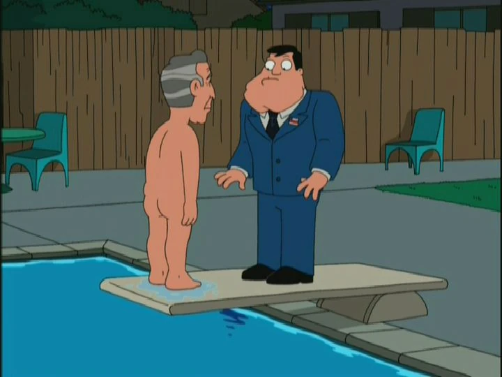 Hayley, out of dislike of Bush, but even more, from anger at Stan takes Bush around the town, taking pictures of him that she hopes will be able to cause a scandal. Stan tracks them down as the president is skinny dipping in a neighbor's pool. Stan gives the president his jacket, but, distracted by a bickering Hayley, Bush manages to slip away. The two continue to chase him, cornering him in an alley. There, Bush breaks down and admits to Stan that, knowing that most people do not like him, he has found the presidency too difficult and wants to resign. However, when he finds a copy of Stan's speech in Stan's jacket, Stan begins to read it to him, as they walk back to the Smith house, a bitter Hayley in tow. Hearing Stan's words, President Bush regains his confidence in his ability to lead the country.