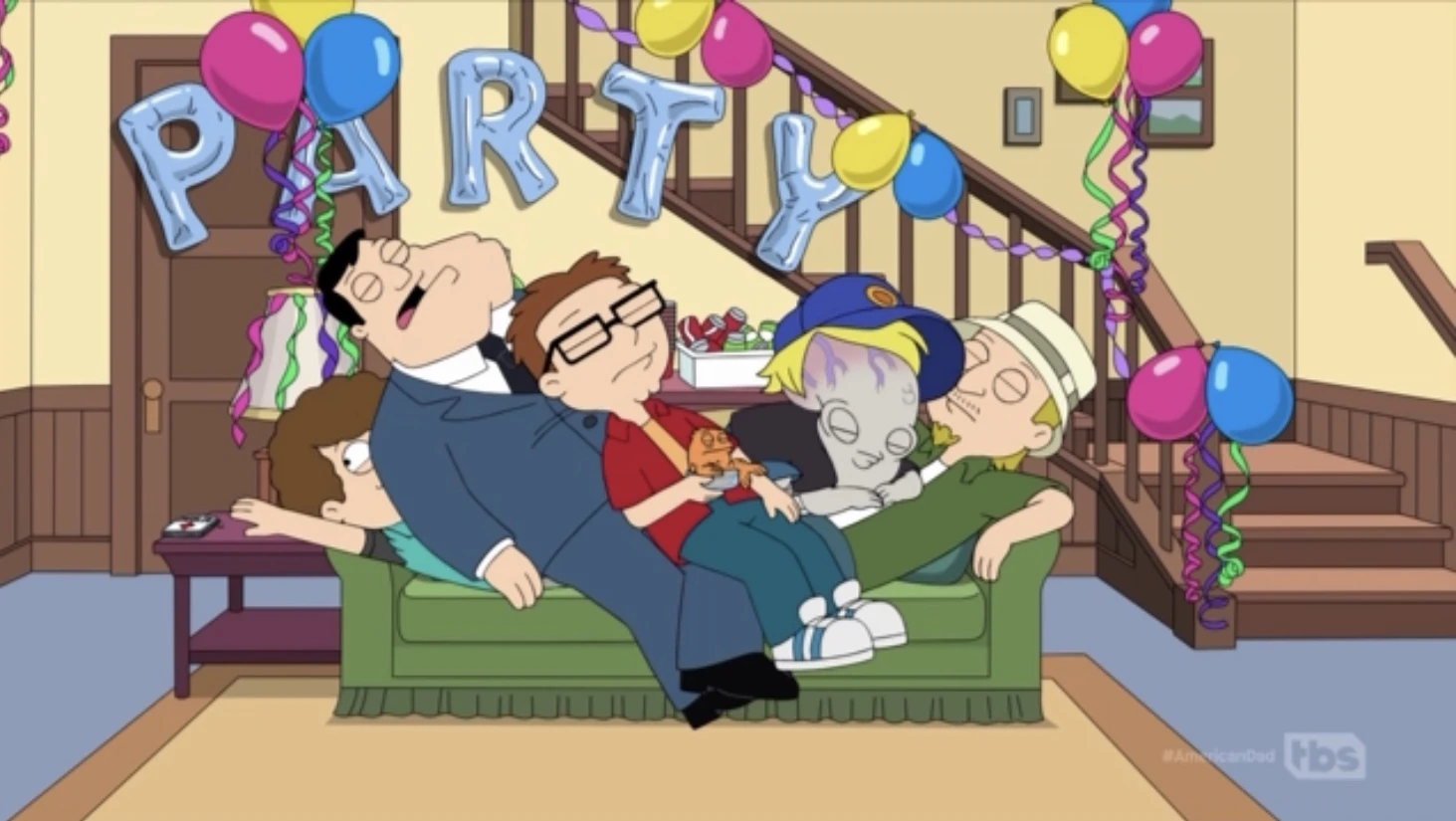 Meanwhile, Stan announces that he just discovered that he's an adult and can have a party on his own, which blows the minds of the guys. But when the party plans stretch out over two weeks, it leaves everyone exhausted and passed out on top of Snot, who can't reach his insulin. They awaken to find that the party happened while they were out cold and missed it, but Stan is still pleased that he threw the bash of the year.