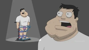 Stan sings "Climb Ev'ry Mountain", accompanied by Hayley, Roger and Klaus as a Balalaika trio as Francine sets off to rescue Steve from The Gash Sweatshop in "Crotchwalkers" after he is sent there for attempted shoplifting. Stan sings in a high-pitched voice after suffering an injury to his testicles, forcing them to retreat into his body.