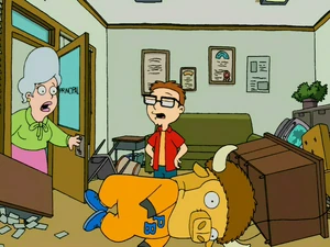 When Steve requisitions Lewis' office after becoming the Pearl Bailey High School student body president. he orders Doris to send in the school buffalo mascot and rides the student in the costume until he collapses. Steve then requests her to send in the lunch lady.