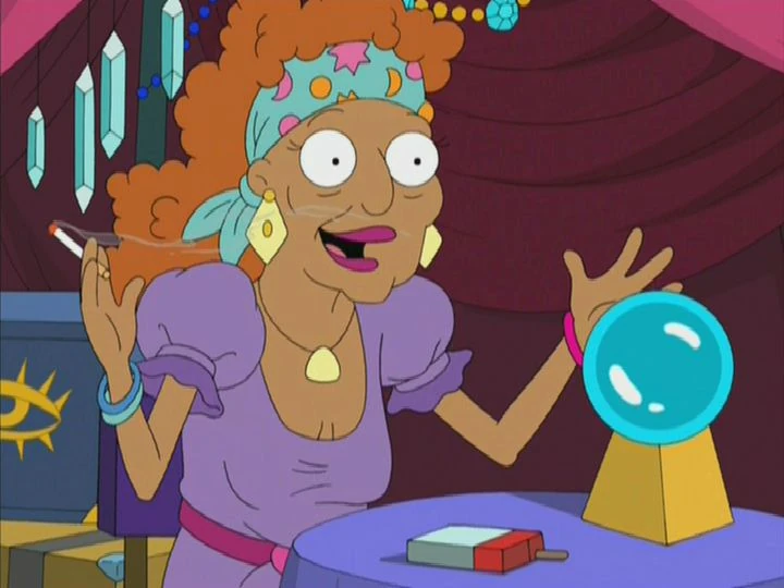 Eartha Kitt provided the voice of the fortune teller at the carnival that tells Steve he is destined for greatness in "Dope & Faith" which Roger uses to trick Steve into thinking he has been accepted to Hogwarts School of Wizardry.