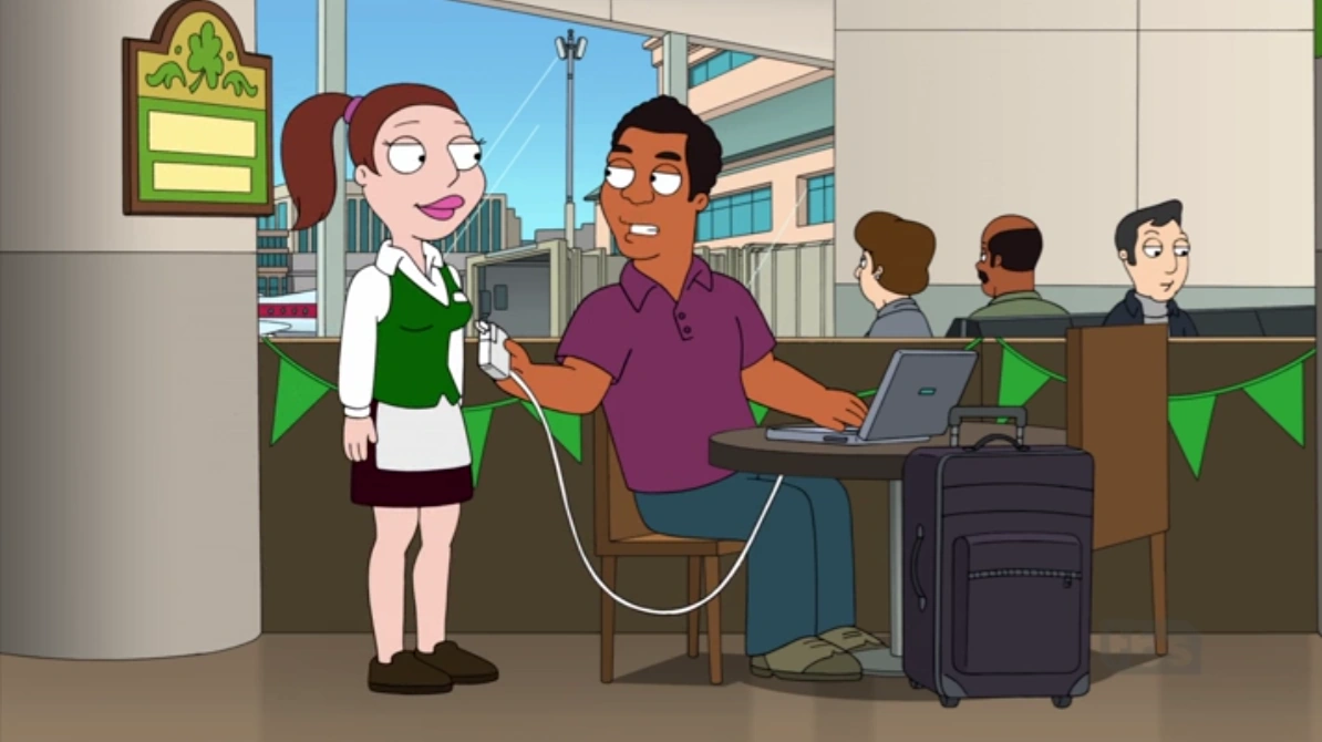 Eugene provides assorted voices for American Dad!, including the customer with the laptop in "An Irish Goodbye".