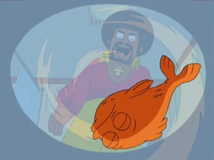 Klaus, after some quick preparations, seduces Francine at the mall before Stan arrives, revealing the ruse; but an eco-terrorist friend of Hayley sets off a series of bombs, blowing up a statue of Chief Shop-a-holic in the mall. Klaus dives out of the way to protect his new body; Stan, however, pushes Francine out of the way, but the statue piece hits his clock necklace of Stan's, ruining it but keeping Francine and Stan safe. Hayley's eco-terrorist friend is then placed under arrest. Klaus' body is half-crushed by a large piece of the statue, and near death he pleads with Stan to save his life. Francine also pleads with Stan to save Klaus' life, thinking he has learned his lesson about attempting adultery. Stan says the CIA has no more abducted people, so he purchases a goldfish from the mall pet shop and places Klaus' mind in it to save his life.