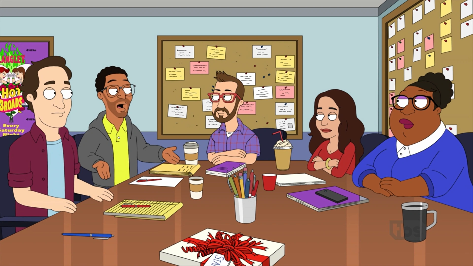 When the discover that their show finale will get maximum exposure airing after the Super Bowl, they brainstorm for ideas, with Finchy proposing an episode shot from the perspective of a tax return, which gets positive feedback from Stan.