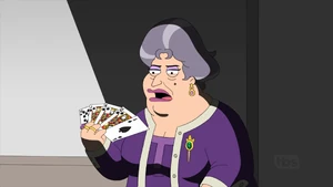 For losing, Francine finds herself forced to work for eternity in Frog Rose Illegal Gamblery. Roger and the kids attempt to rescue her by putting themselves up as stakes in a game between Francine and Rose. Francine, who had been in a deep catatonic state, reveals that she had been hiding her thoughts and manages to bluff her way to victory against Rose.