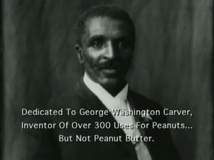 George Washington Carver plays a pivotal role in "Black Mystery Month". Abraham Lincoln invents peanut butter, or more correctly, Mary Todd Lincoln invents it to ward off spirits, and plans to use it to win over the South by reporting a black man invented it. His assassination at the hands of John Wilkes Booth delays this until President Grover Cleveland leaves a jar of the peanut butter on George Washington Carver's doorstep. A title card at the end of the episode correctly notes his number of inventions involving the peanut, but peanut butter is not among them.