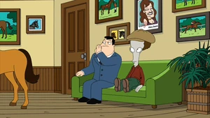 She appears in a photograph in the office of Brian P. Mahon in "Don't Look a Smith Horse in the Mouth".
