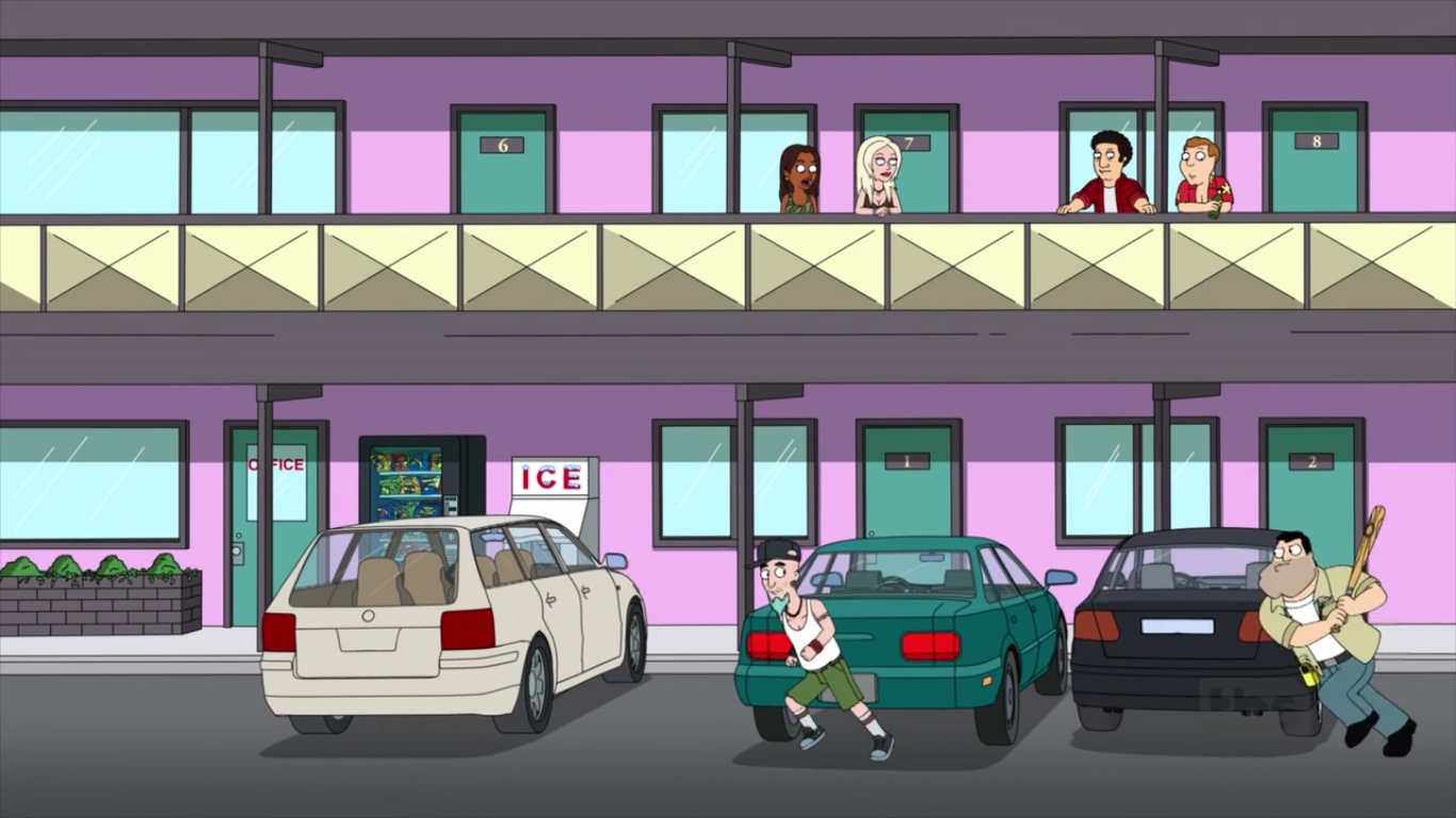 Joy provides the voice of the woman on the balcony encouraging Stan as he chases the drug dealer in "A League of His Own".