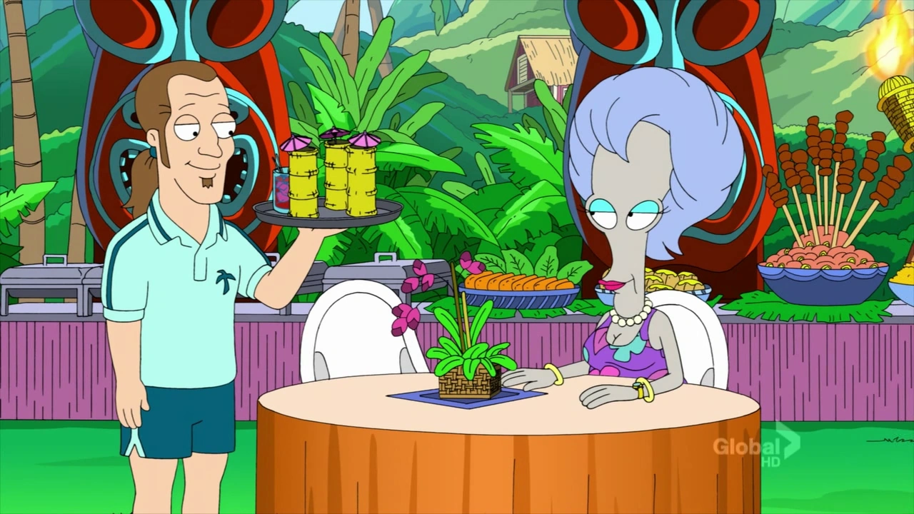 Mario is a waiter at a posh tropical resort that Roger, in the guise of an elderly widow makes small talk with while waiting for "her" date in "Killer Vacation".