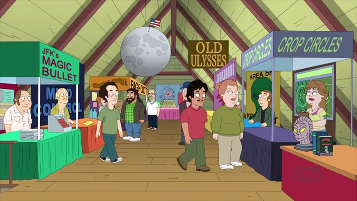- One of the banners in Roger's conspiracy con is printed with "Old Ulysses," foreshadowing the later episode "The Legend of Old Ulysses".