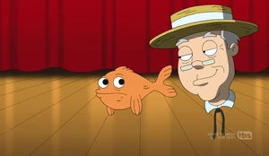 When some of Roger's acid falls into Klaus' bowl in "Camp Campawanda", he starts to hallucinate a giant goldfish cracker from a bag coming to life. As the hallucination turns into a complete auditorium of Pepperidge Farm products, the disembodied head of Parker Fennelly appears and tells Klaus that he's tripping.