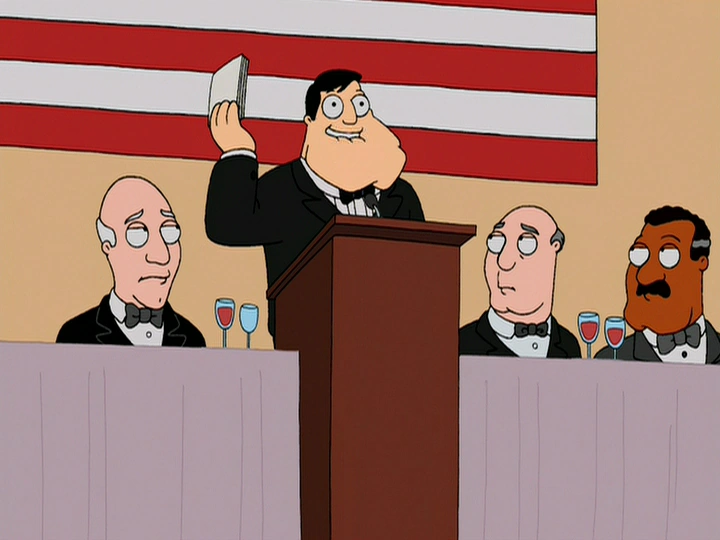 Plot: Stan and his cohorts meet at a park to discuss planning a surprise 25th anniversary for Bullock. Bullock, of course, is spying on them and Stan takes all of the credit for the party idea. Bullock is pleased. At home, Stan tells Francine the good news: She’s in charge of planning Bullock’s party for Saturday. Except that’s the same night Francine is appearing in a play.