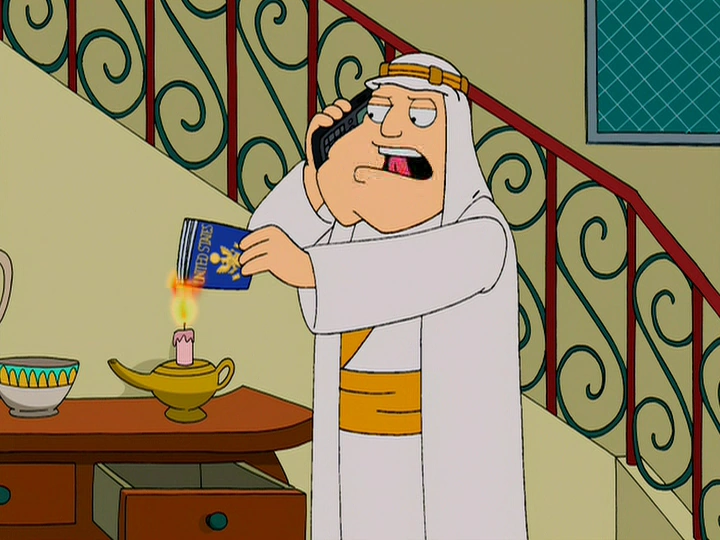 During a dinner party, Stan enjoys his new friends even accepting a robe as a gift. But Francine engages in a brutal fight with Stan’s second wife. Bullock calls and tells Stan he can have his old job in the States back but Stan says he kinda likes Saudi Arabia. As for the family, well, Steve just crashed his Mercedes into an oil derrick in the middle of nowhere, Roger is being taken to a remote location by his new husband and Hayley is running from the morality police. Stan angrily tells Bullock he renounces his American citizenship and burns the family's passports. He’ll be staying on the Arabian peninsula.