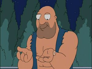 When Hayley unionizes the homeless so they won't fight in Stan's "bum fights" in "Threat Levels", Steve arranges for Stan to fight a giant bum described as so bad that he "killed his own name". To make the scene even more horrifying, he bites off his own thumb. As it turns out however, Hayley and Steve had rigged the fight, as the bum was actually actor Ted Feedler, paid to throw the match after having pummeled Stan a bit. When Ted looks at his hands after admitting he was really an actor, he reacts in horror to what he did to his beautiful hands by biting off his thumb.