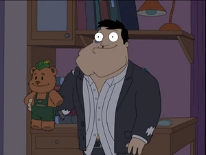 Teddy Bonkers is a teddy bear that is first introduced in "Haylias" when Stan used Teddy as shield during Hayley's brainwashed state, figuring her childhood toy would stop her from killing him.