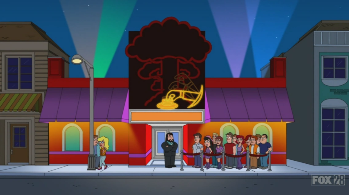The Button is a nightclub where Francine had an affair with Joel Larson right before her wedding to Stan Smith in "The Kidney Stays in the Picture".