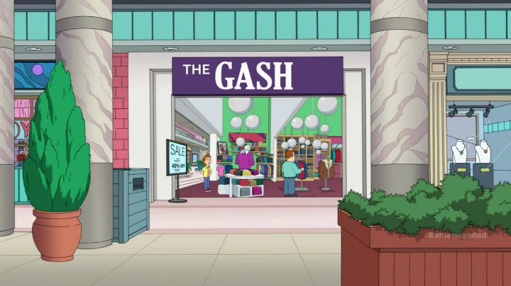 When Francine decides to bond with Steve by teaching him how to shoplift in "Crotchwalkers", she steers him away from The Gash, fearful of their security. When they admit they stole goods they give to the family, Stan forces them to promise to stop shoftlifting. When Steve rejects spending other time with Francine, she decides for them to go out with one last heist at The Gash, releasing a horde of rats in a dressing room as Steve tries to tuck a garment under his shirt but is caught and sent off to work in The Gash Sweatshop.